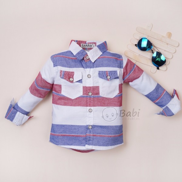 Tên sản phẩm Sơ mi tay dài cho bé trai sọc caro phối túi